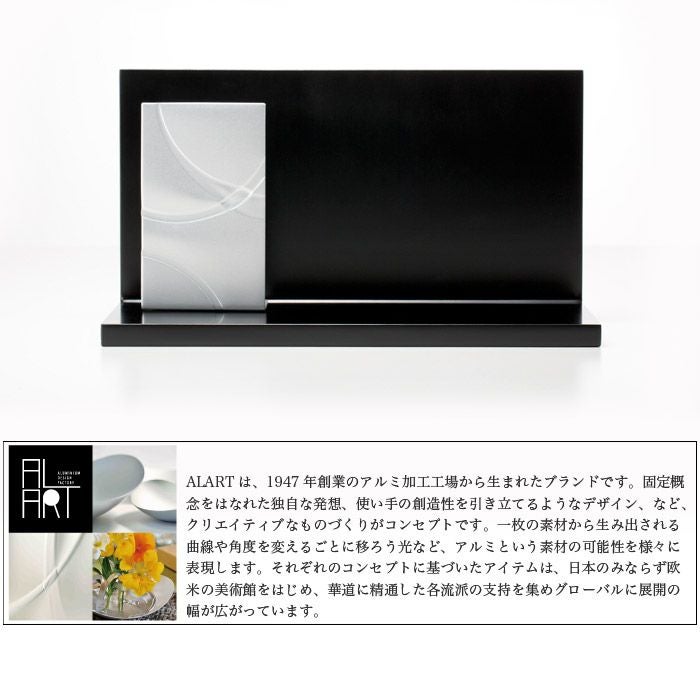 ALARTは、1947年創業のアルミ加工工場から生まれたブランドです。固定概念をはなれた独自な発想、使い手の創造性を引き立てるようなデザイン、など、クリエイティブなものづくりがコンセプトです。一枚の素材から生み出される曲線や角度を変えるごとに移ろう光など、アルミという素材の可能性を様々に表現します。それぞれのコンセプトに基づいたアイテムは、日本のみならず欧米の美術館をはじめ、華道に精通した各流派の支持を集めグローバルに展開の幅が広がっています。