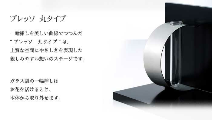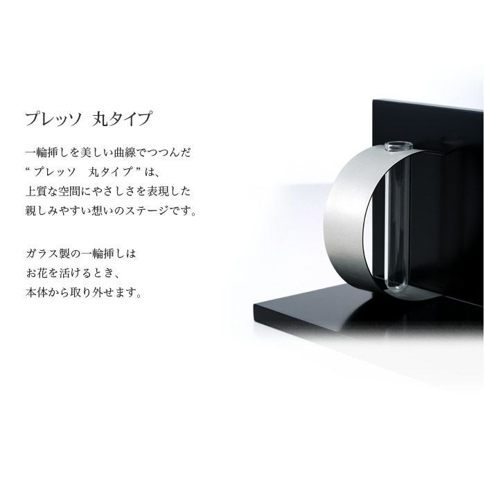 一輪挿しを美しい曲線でつつんだ“プレッソ 丸タイプ”は、上質な空間にやさしさを表現した親しみやすい想いのステージです。