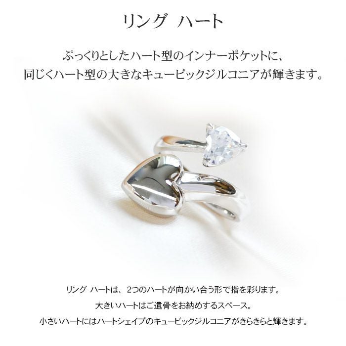 大きいハートはご遺骨をお納めするスペース。小さいハートにはハートシェイプのキュービックジルコニアがきらきらと輝きます。