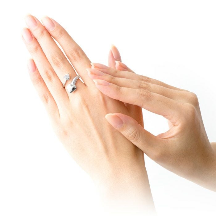 リング ハートは、2つのハートが向かい合う形で指を彩ります。