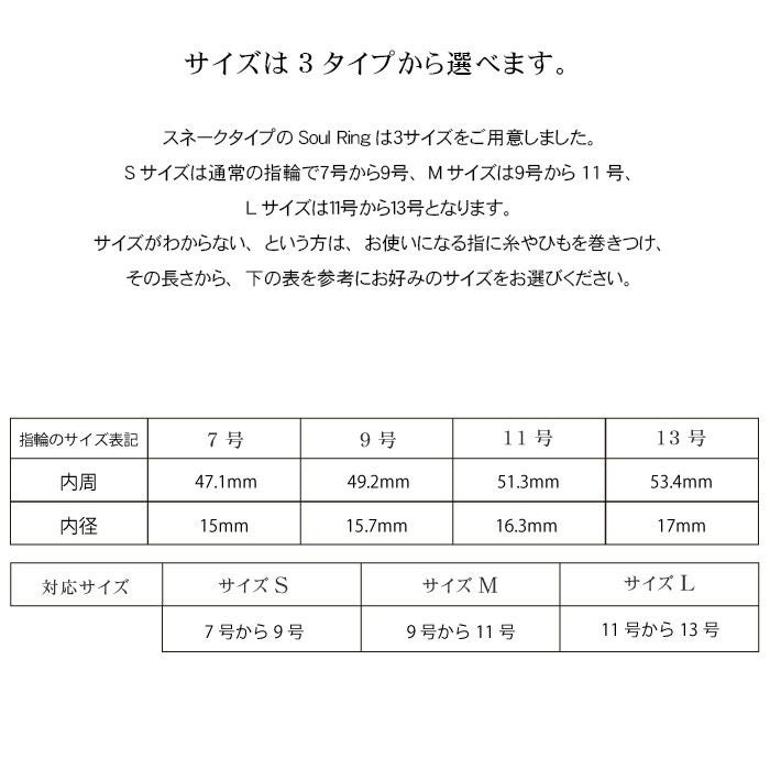 スネークタイプのSoul Ringは3サイズをご用意しました。
