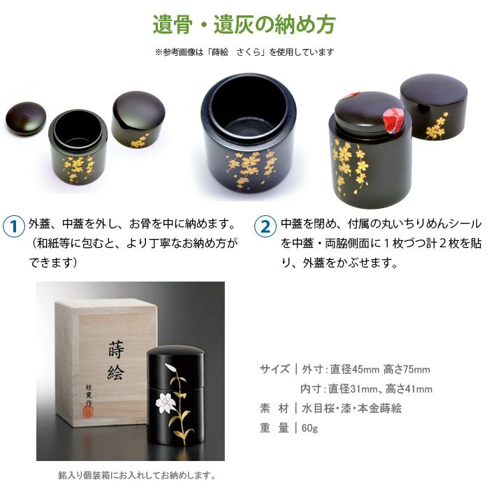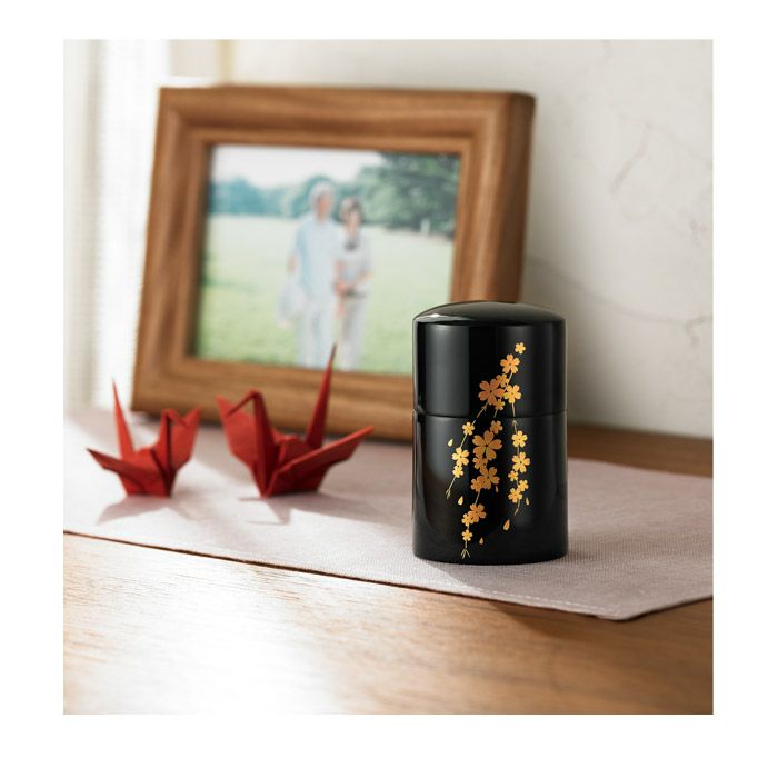 日本の伝統工芸、本漆と本金蒔絵のミニ骨壺。