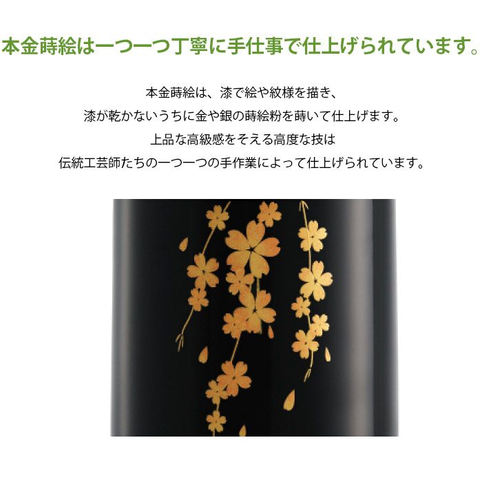 本金蒔絵によって描かれた季節のうつり変わりや美しい花々が大切な人をやさしくつつみこみます。