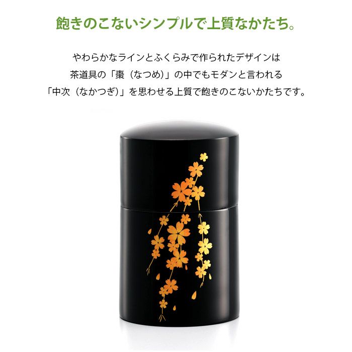やわらかなラインとふくらみで作られたデザインは茶道具の「棗(なつめ)」の中でもモダンと言われる「中次(なかつぎ)」を思わせる上質で飽きのこないかたちです。