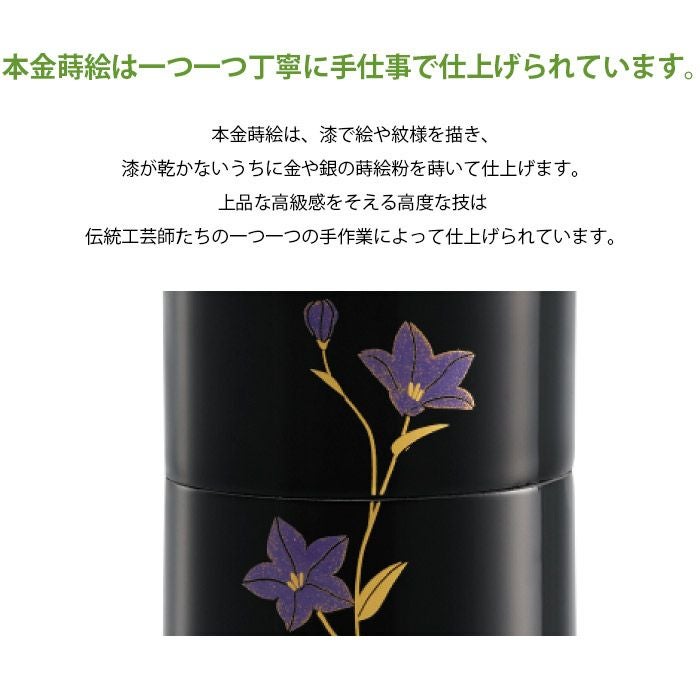 本金蒔絵によって描かれた季節のうつり変わりや美しい花々が大切な人をやさしくつつみこみます。