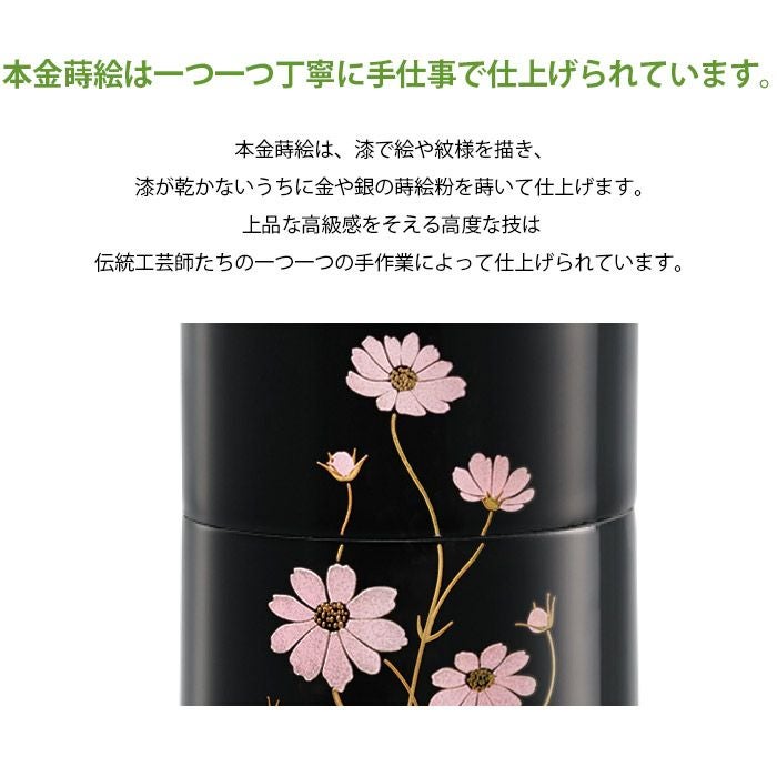 本金蒔絵によって描かれた季節のうつり変わりや美しい花々が大切な人をやさしくつつみこみます。