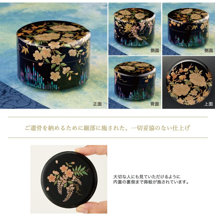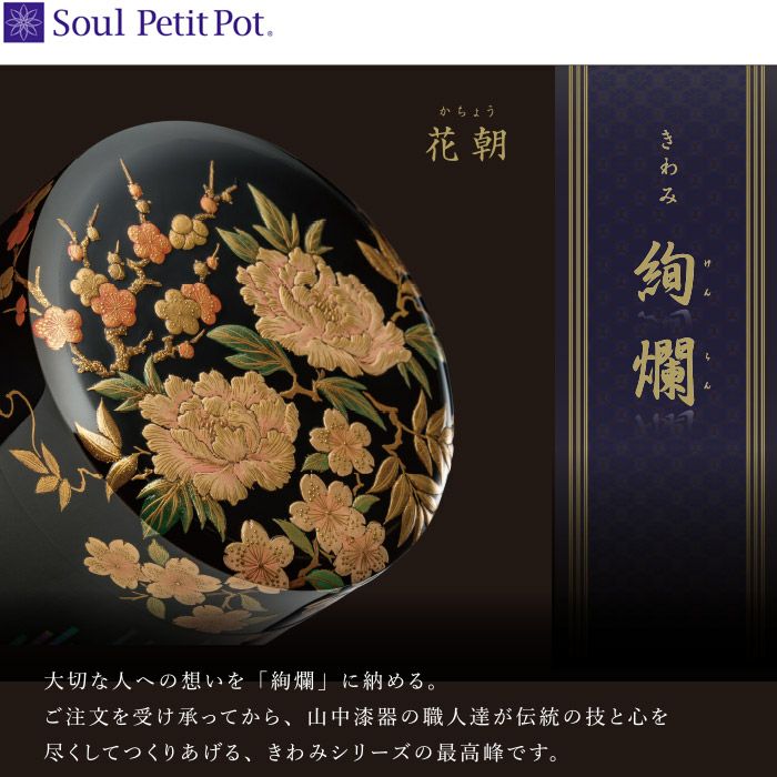 承ってから、山中漆器の職人達が伝統の技と心を尽くしてつくりあげる、きわみシリーズ最高峰のミニ骨壺です。
