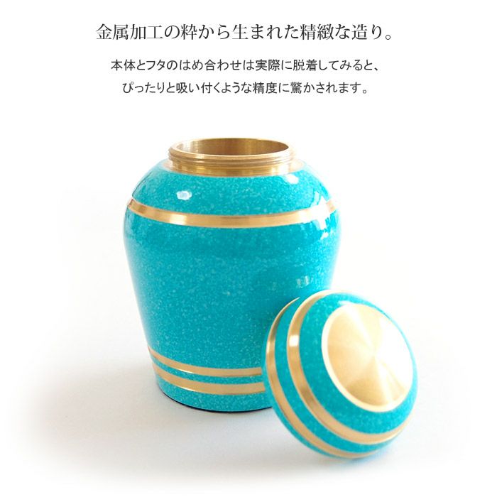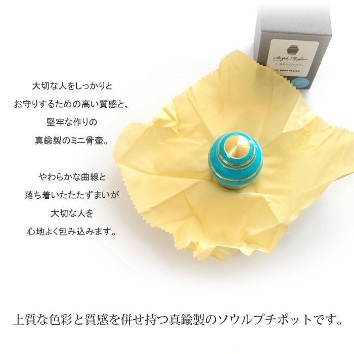 真鍮製の堅牢なデザインは2012年にグッドデザイン賞を受賞し、手元供養のミニ骨壺では珍しかった鮮やかな発色と、イメージ通りの色を選べるカラーラインナップは、発売当時から今も変わらず多くの方の支持を頂いております。