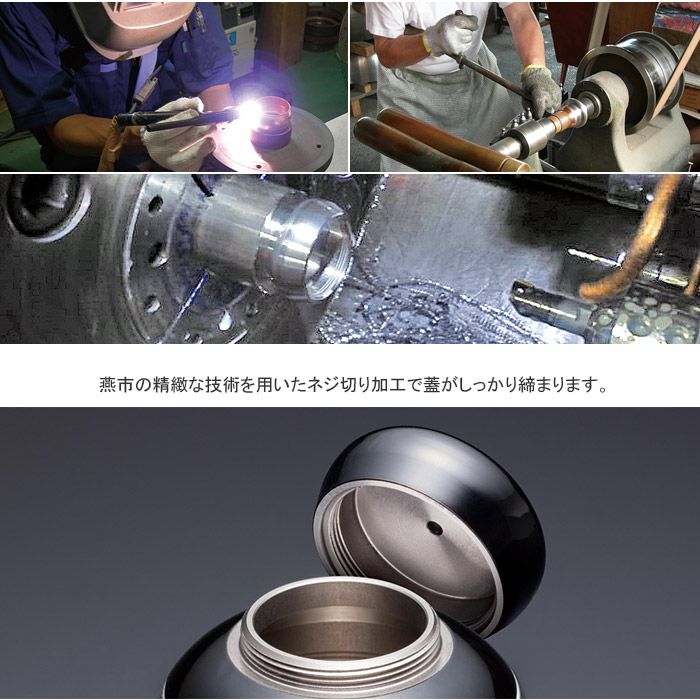 燕市の精緻な技術を用いたネジ切り加工で蓋がしっかり締まります。