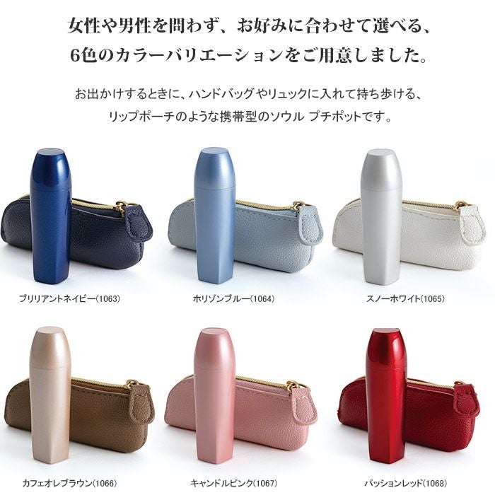 お出かけするときに、ハンドバッグやリュックに入れて持ち歩ける、リップポーチのような携帯型のソウル プチポットです。