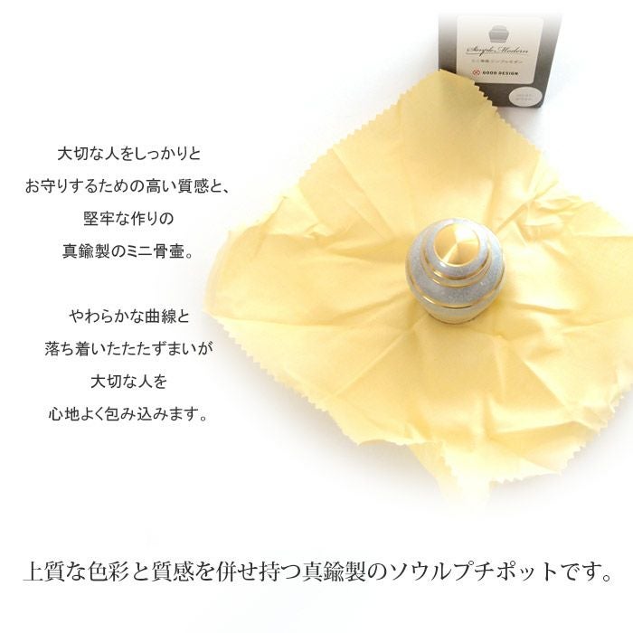 真鍮製の堅牢なデザインは2012年にグッドデザイン賞を受賞し、手元供養のミニ骨壺では珍しかった鮮やかな発色と、イメージ通りの色を選べるカラーラインナップは、発売当時から今も変わらず多くの方の支持を頂いております。