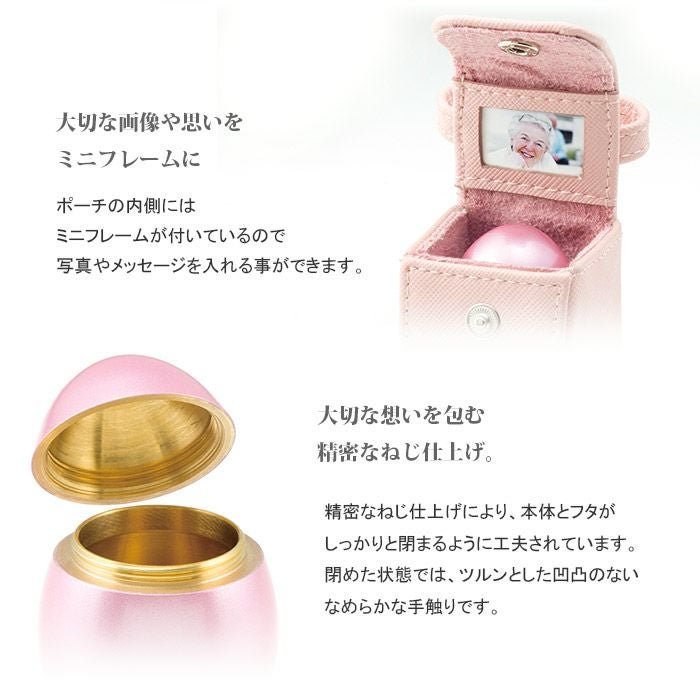 フタを開け、直接、または付属のインナーポーチ(遺骨袋)や、ご自身で用意された紙などに包み納めください。 (包み紙は付属しておりません、お好みの紙(和紙や千代紙など)をご用意ください)