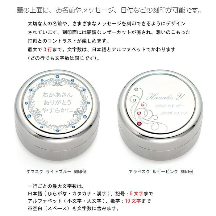 蓋の上面に、お名前やメッセージ、日付などの刻印が可能です。