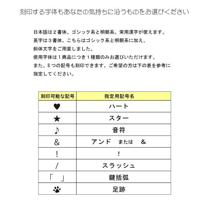 使用字体は1商品につき1種類のみお選びいただけます。