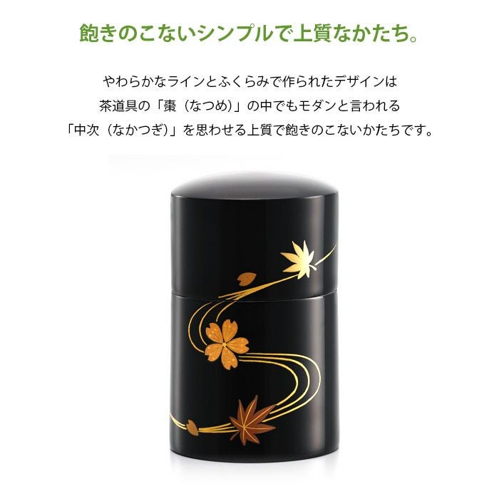 やわらかなラインとふくらみで作られたデザインは茶道具の「棗(なつめ)」の中でもモダンと言われる「中次(なかつぎ)」を思わせる上質で飽きのこないかたちです。