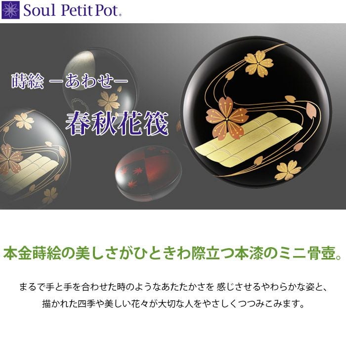 本金蒔絵の美しさがひときわ際立つ本漆のミニ骨壺。