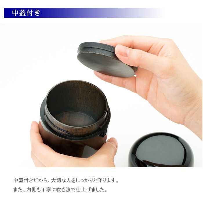 必ず本漆のミニ骨壺と同時にお申し込み下さい。後日お申し出がありましても追加で文字入れはできません。