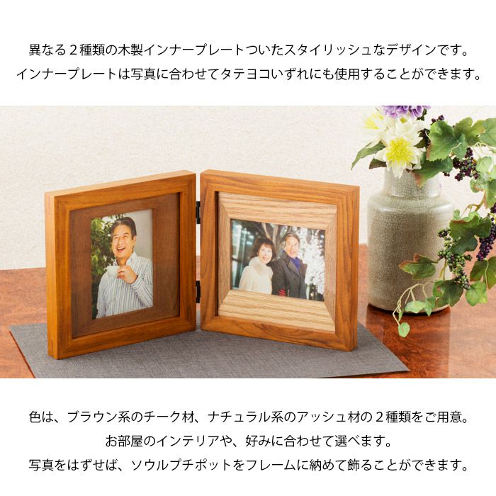 2枚の写真を飾ることができる ダブルフレームタイプ。