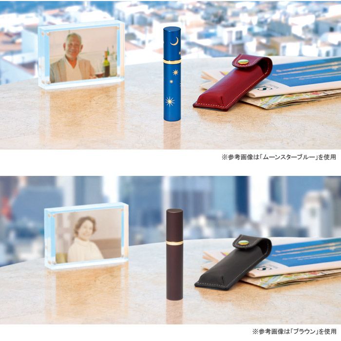 上質な仕上げを施した円筒型の金属ケースは、ちょうどリップスティックぐらいの大きさです。