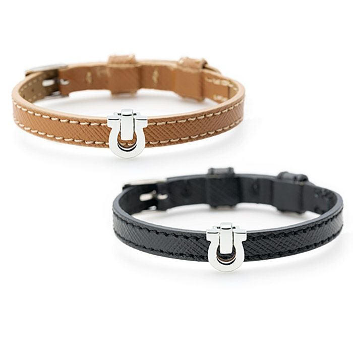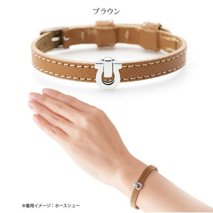 K10ホワイトゴールド、牛革(抗菌加工の裏地付)、ステンレス(ベルト金具)