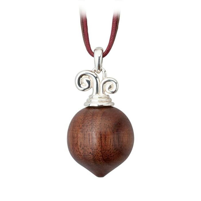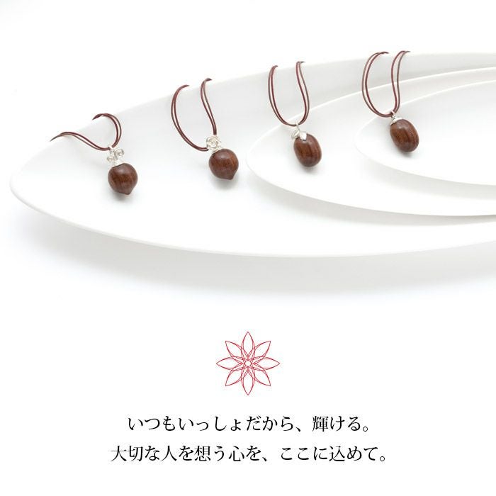 木のぬくもりをいかしたペンダントトップと、コットンの紐を使用し、可燃性の素材を多用しています。