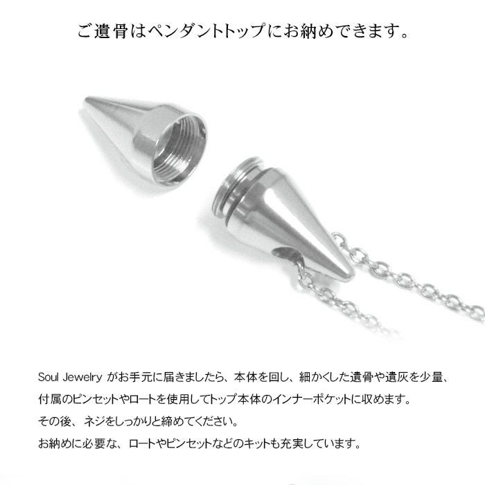 ネジを外し、細かくした遺骨や遺灰を少量、付属のロートを使用しトップ本体のインナーポケットに収めます。その後、ネジをしっかりと締めてください。