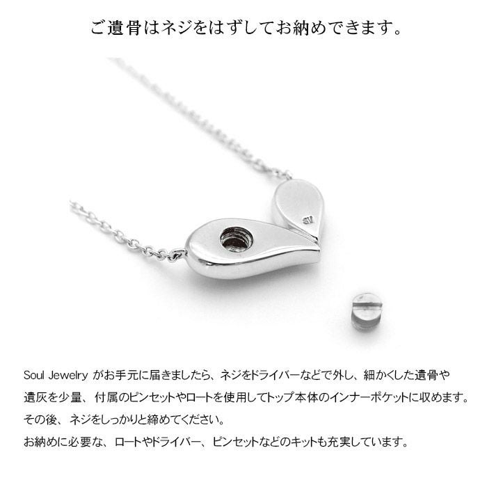 ネジを外し、細かくした遺骨や遺灰を少量、付属のロートを使用しトップ本体のインナーポケットに収めます。その後、ネジをしっかりと締めてください。