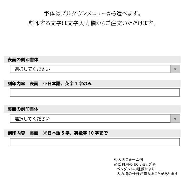 ・ペンダントへの刻印場所は、ご希望に可能な限り沿うようつとめますが、ご要望にお応えできないこともございます、あらかじめご了承ください。