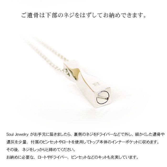 ご家族、ご兄弟、ご両親、恋人。事前には想像することすら耐えがたいことですが、最愛の人が帰らぬ人になってしまった時。人である以上いつかは避けられないこの別れに際して、インナーポケット機能がついた『Soul Jewelry(ソウルジュエリー)』は、最愛の方の形見や遺灰を収納していただくことができるジュエリーペンダントです。