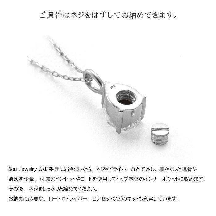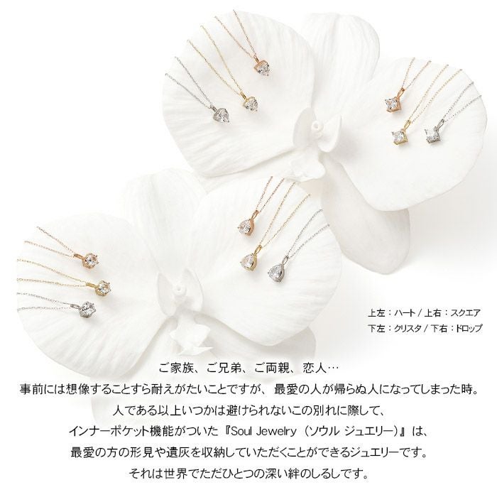 人である以上いつかは避けられないこの別れに際して、 インナーポケット機能がついた”Soul Jewelry”は、最愛の方の形見や遺灰を収納していただくことができるジュエリーペンダントです。