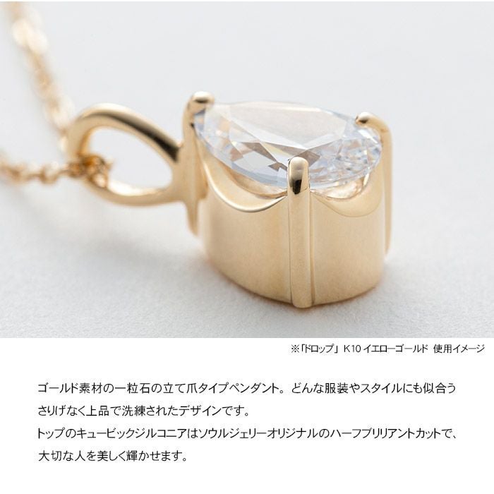 ゴールド素材の一粒石の立て爪タイプペンダント、どんな服装やスタイルにも似合うさりげなく上品で洗練されたデザインです。
