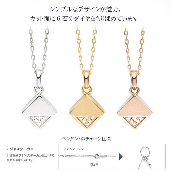 シンプルなデザインが魅力。カット面に6石のダイヤをちりばめています。