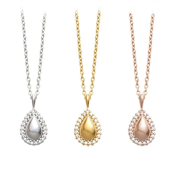 ペンダントトップの周囲を取り巻くストーンがアクセント。