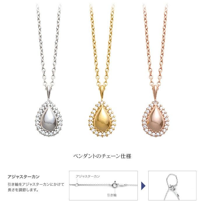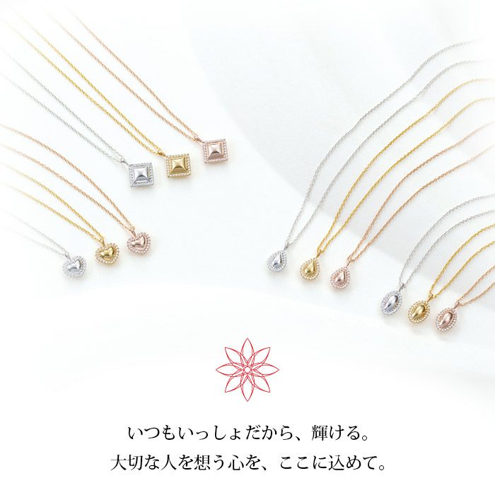 小さなペンダントトップでシンプルながら華やかな印象を与える、年齢を問わず身に着けられる飽きのこないデザイン。