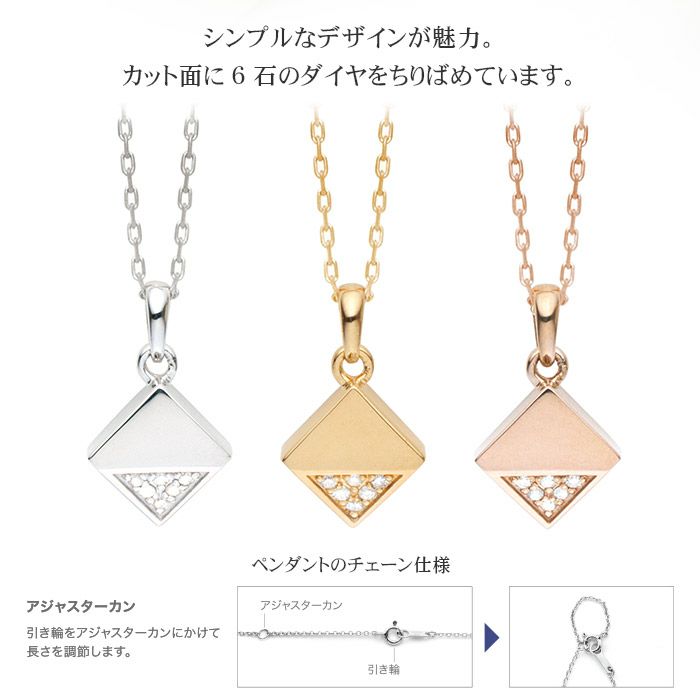 シンプルなデザインが魅力。カット面に6石のダイヤをちりばめています。