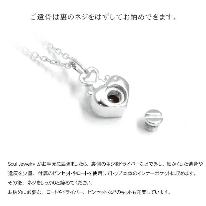 人である以上いつかは避けられないこの別れに際して、 インナーポケット機能がついた”Soul Jewelry”は、最愛の方の形見や遺灰を収納していただくことができるジュエリーペンダントです。