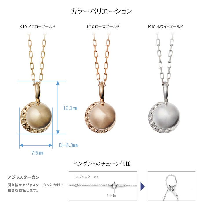 トップ、チェーン共にK10製です。 3つの素材からお好みの色をお選びください。