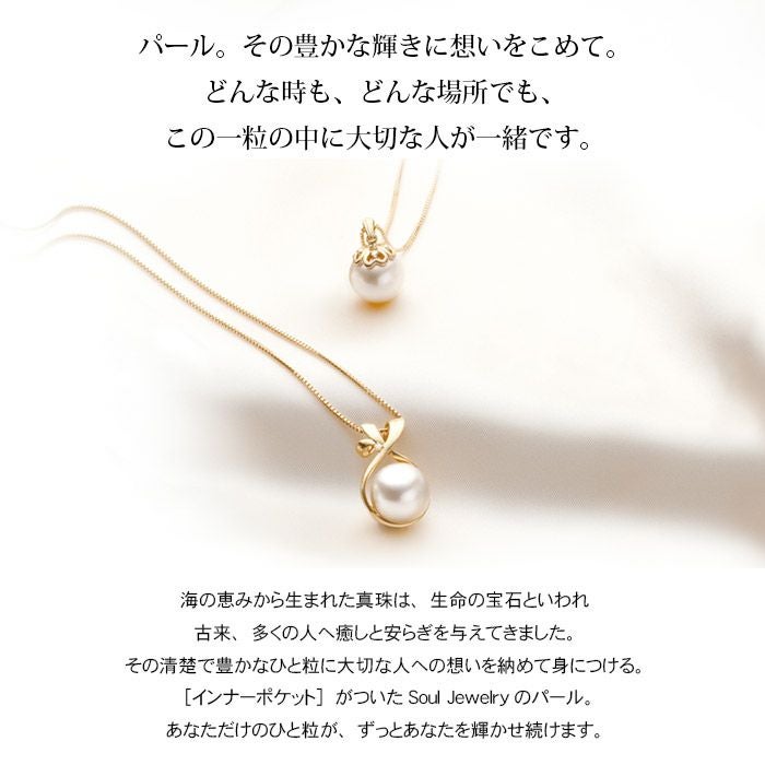 その清楚で豊かなひと粒に大切な人への想いを納めて身につける。[インナーポケット]がついたSoul Jewelryのパール。