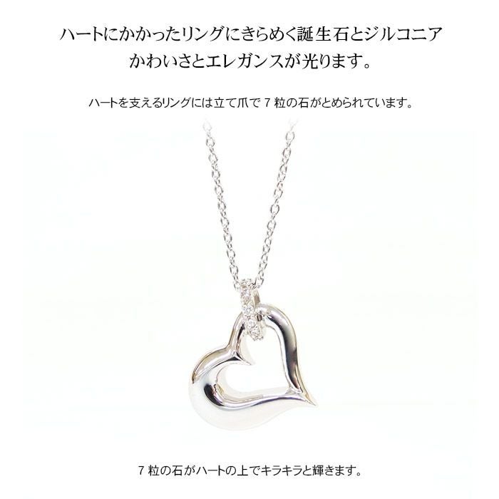 ハートにかかったリングにきらめく誕生石とジルコニア かわいさとエレガンスが光ります。