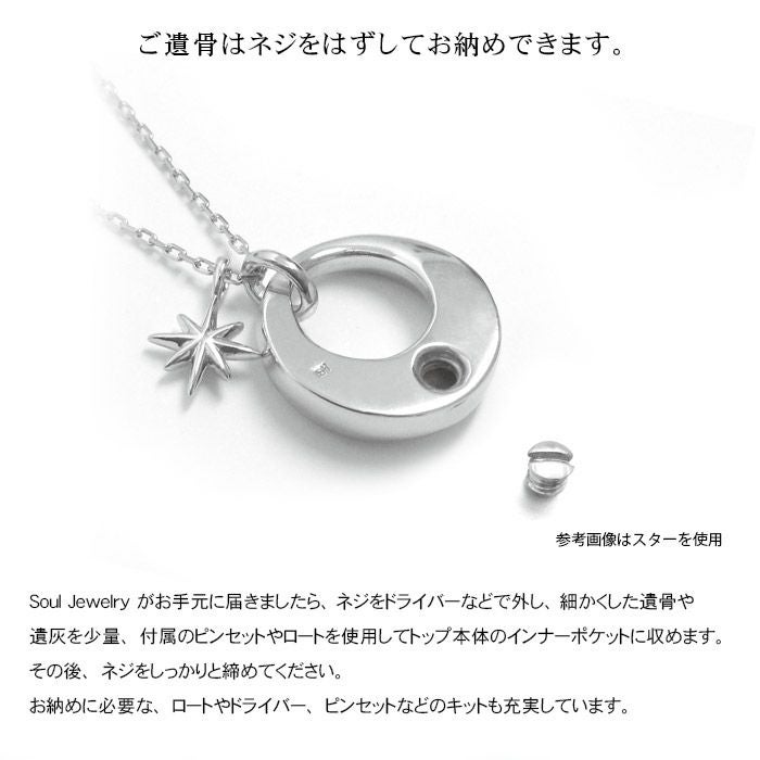 ご家族、ご兄弟、ご両親、恋人。事前には想像することすら耐えがたいことですが、最愛の人が帰らぬ人になってしまった時。人である以上いつかは避けられないこの別れに際して、インナーポケット機能がついた『Soul Jewelry(ソウルジュエリー)』は、最愛の方の形見や遺灰を収納していただくことができるジュエリーペンダントです。