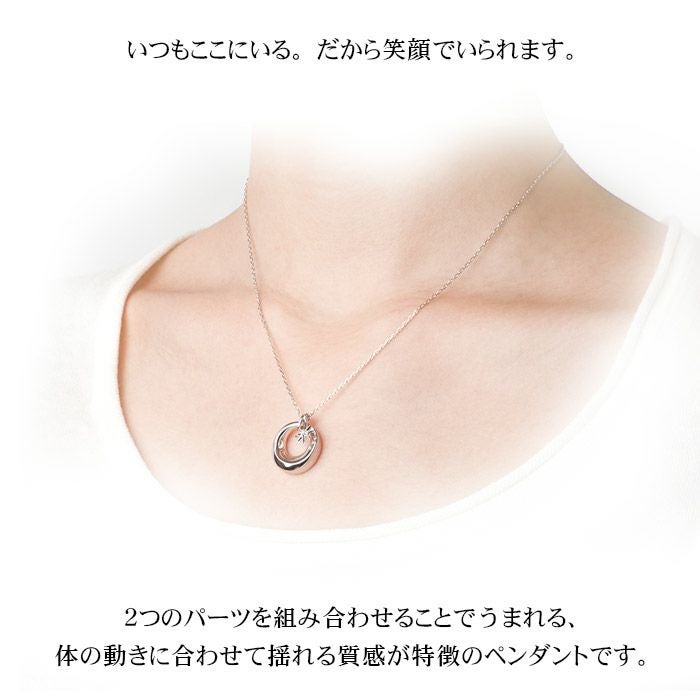 2つのパーツを組み合わせることでうまれる、体の動きに合わせて揺れる質感が特徴のペンダントです。