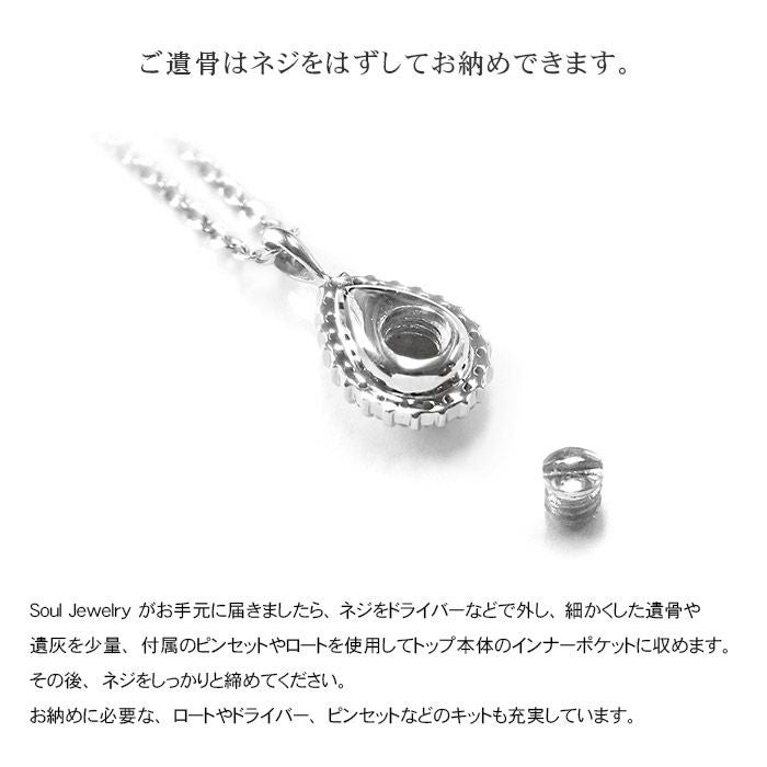 人である以上いつかは避けられないこの別れに際して、 インナーポケット機能がついた”Soul Jewelry”は、最愛の方の形見や遺灰を収納していただくことができるジュエリーペンダントです。