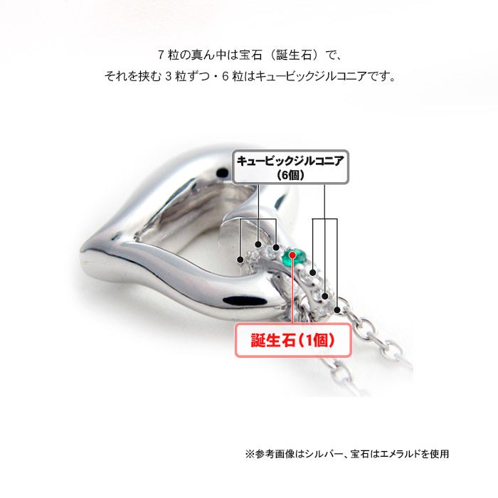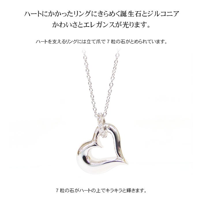 ハートにかかったリングにきらめく誕生石とジルコニア かわいさとエレガンスが光ります。