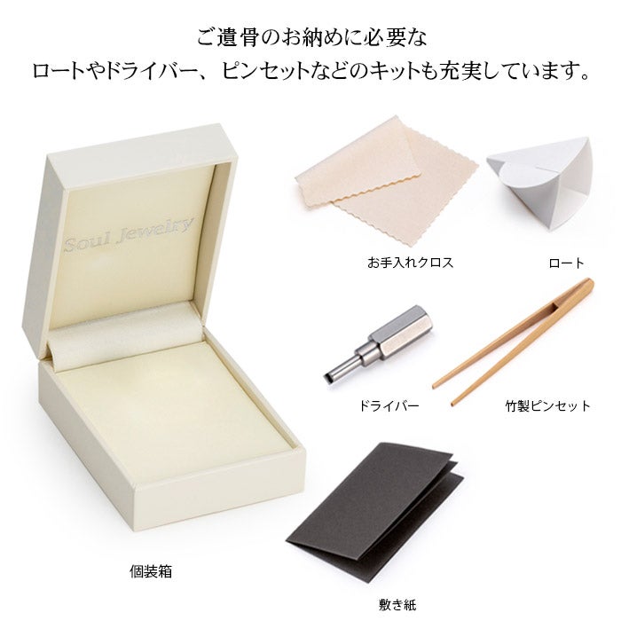 個装箱、納骨キット、専用ドライバー、竹製ピンセット、敷き紙、紙製ロート、お手入れクロス、取扱説明書