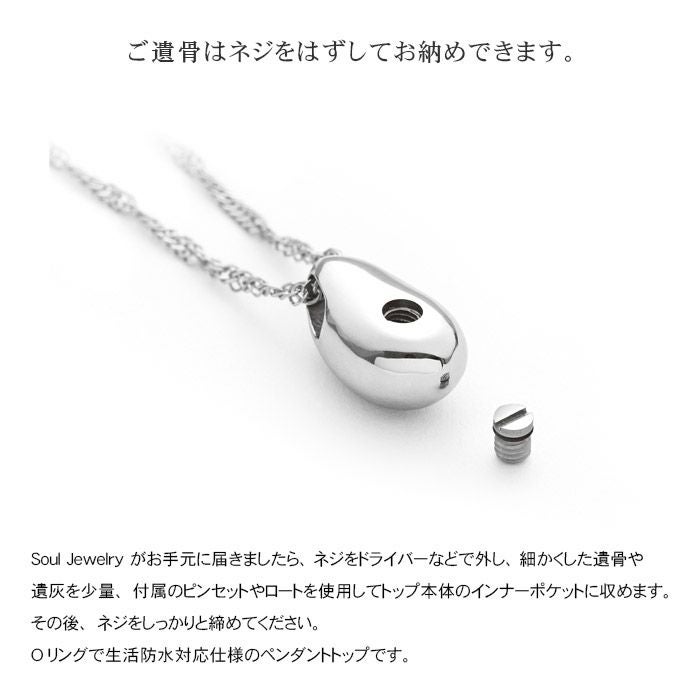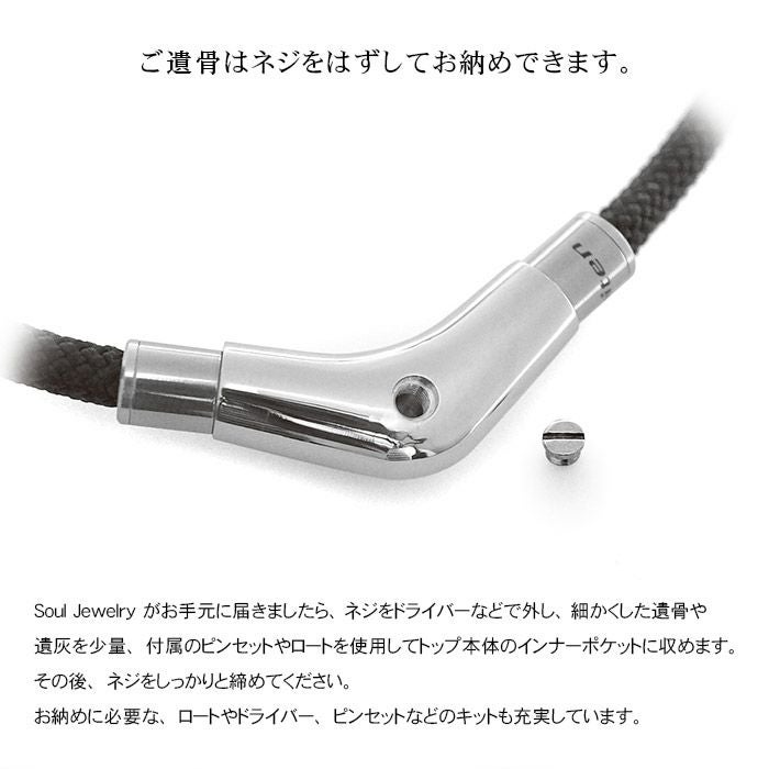 ネジで本体の一部を開閉し、大切なものや想い出の品を収めて身に着けられる、インナーポケット機能がついたペンダント。 お好みのデザインや素材にこだわっています。 身体にやさしい素材、防水機能つきのペンダントもご用意しています。
