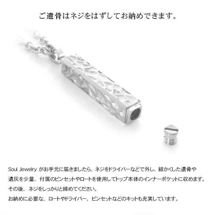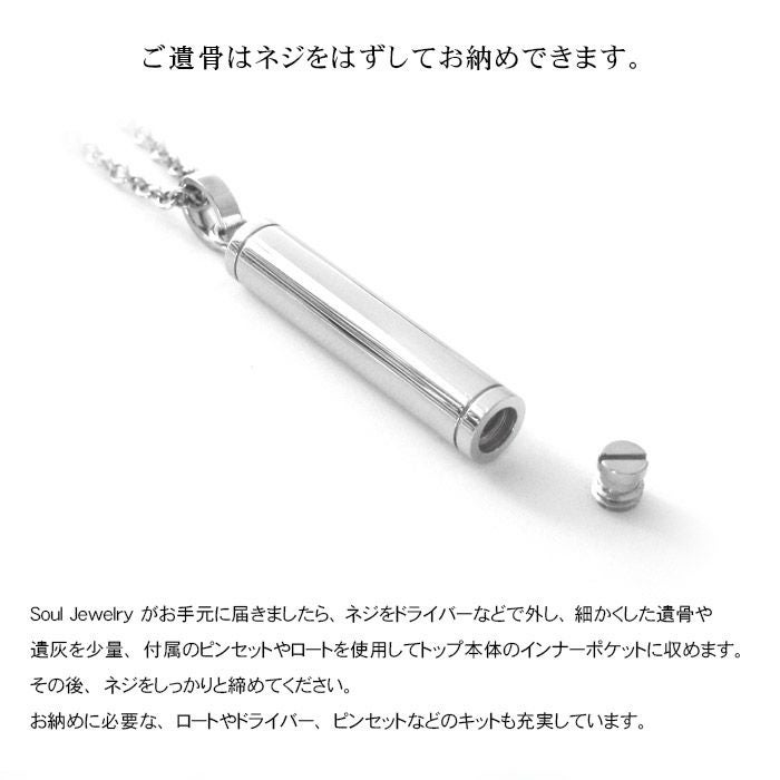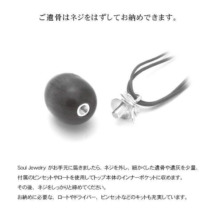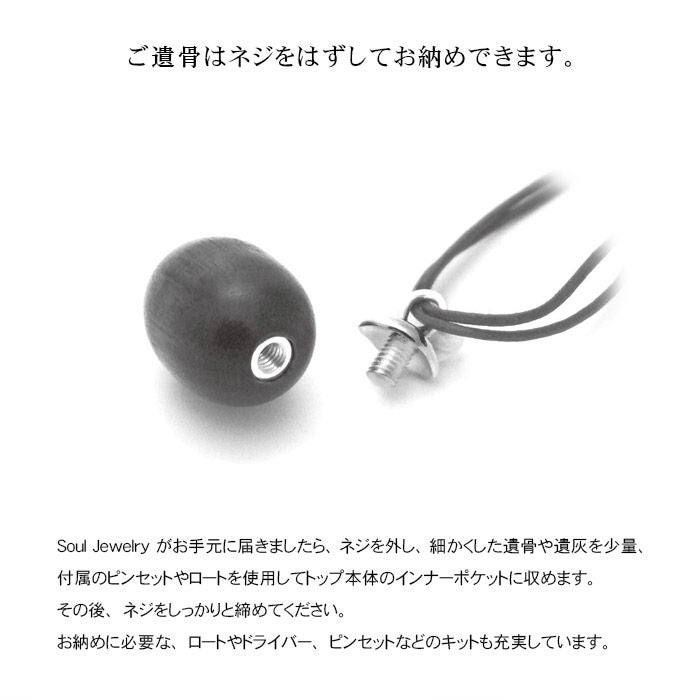 ネジで本体の一部を開閉し、大切なものや想い出の品を収めて身に着けられる、インナーポケット機能がついたペンダント。 お好みのデザインや素材にこだわっています。 身体にやさしい素材、防水機能つきのペンダントもご用意しています。