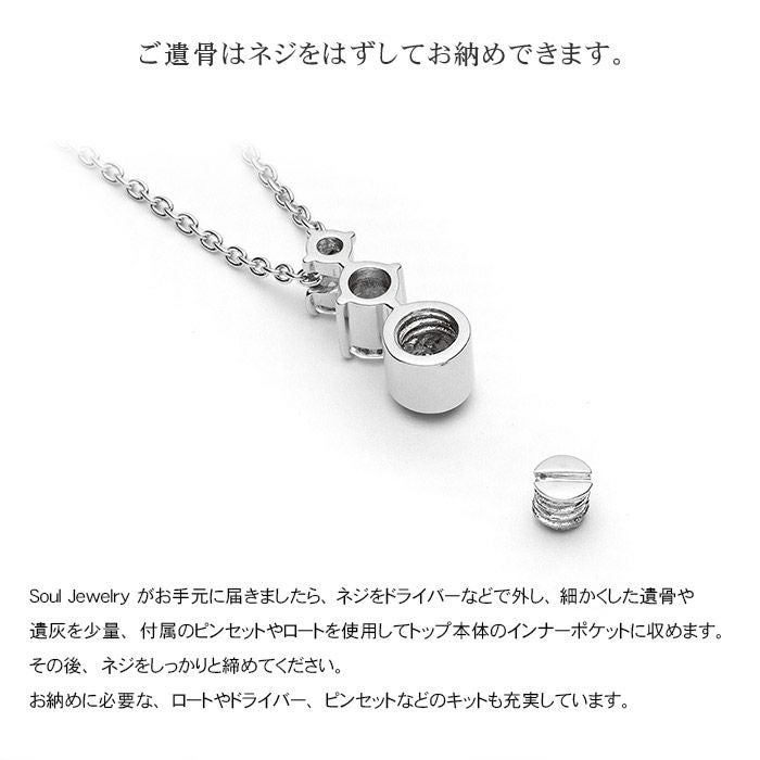 ご家族、ご兄弟、ご両親、恋人。事前には想像することすら耐えがたいことですが、最愛の人が帰らぬ人になってしまった時。人である以上いつかは避けられないこの別れに際して、インナーポケット機能がついた『Soul Jewelry(ソウルジュエリー)』は、最愛の方の形見や遺灰を収納していただくことができるジュエリーペンダントです。