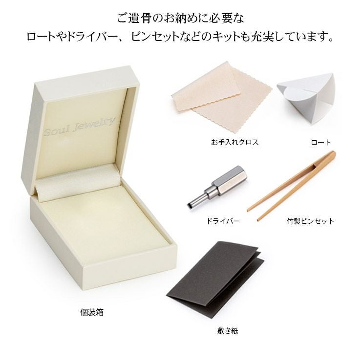 個装箱、納骨キット、専用ドライバー、竹製ピンセット、敷き紙、紙製ロート、お手入れクロス、取扱説明書
