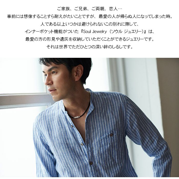 人である以上いつかは避けられないこの別れに際して、 インナーポケット機能がついた”Soul Jewelry”は、最愛の方の形見や遺灰を収納していただくことができるジュエリーペンダントです。
