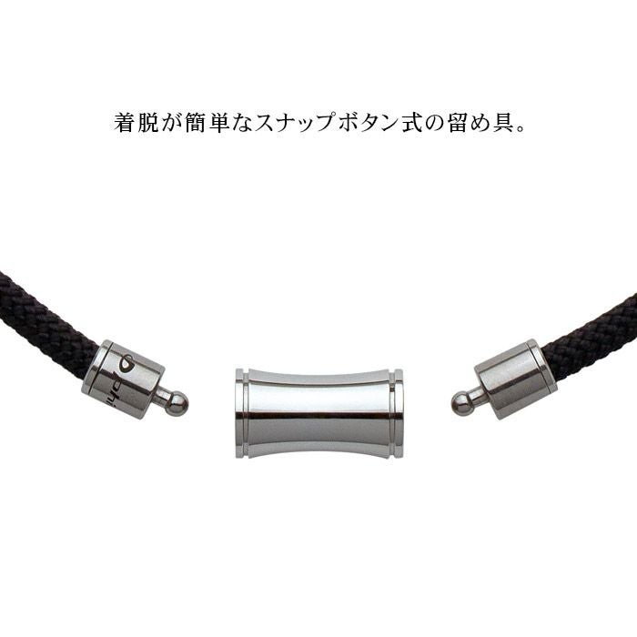 スナップボタン式の留め具(特許技術)を採用し、シンプルな見た目でありながら、簡便な着脱が可能です。